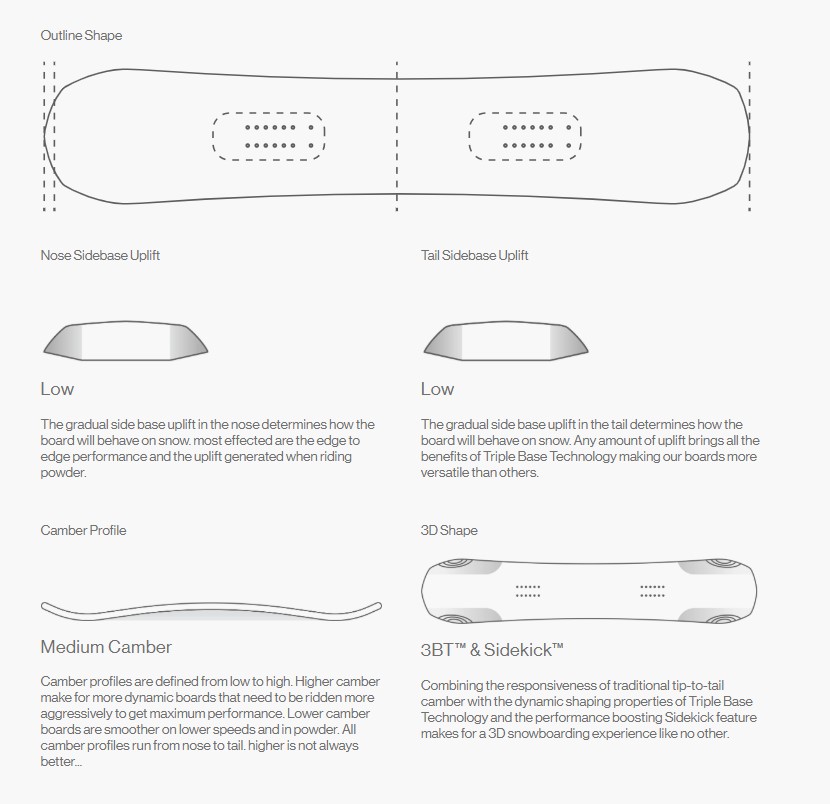 - Profile: Camber with 3BT™ & SideKick™ for smooth turn initiation and improved float.