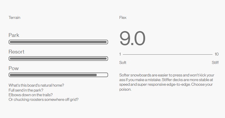 - Terrain: All-Mountain / Freestyle / Park / Resort - excels wherever performance matters most.
