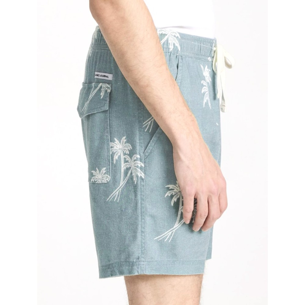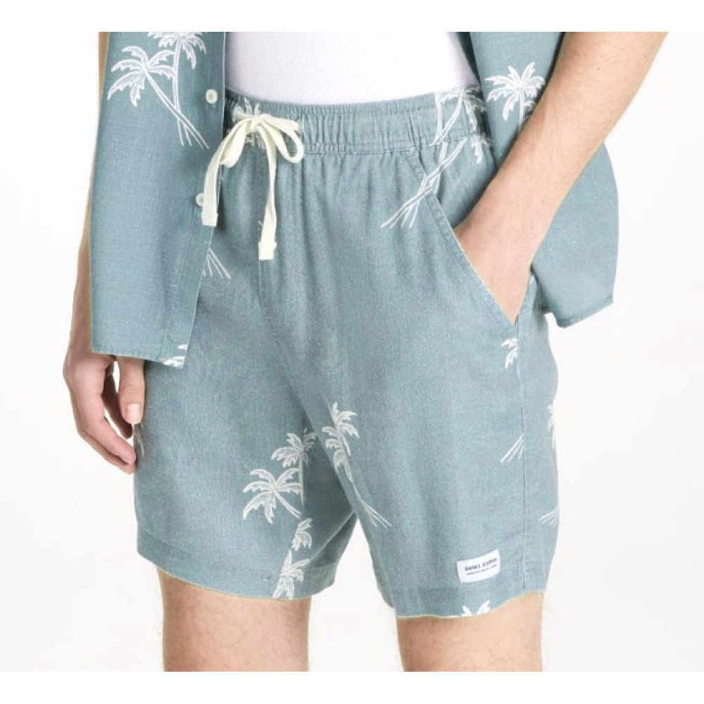 Elastic waistband, All-over print, 17" outseam, Cotton drawcord, Recycled polyester labels, FSC® approved swing tags.