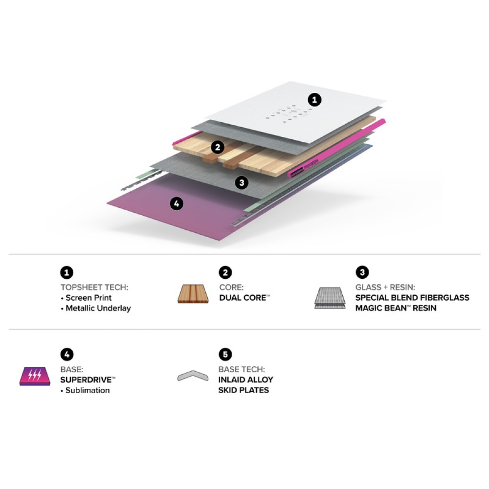The construction is tough but light: a Dual Core™ (poplar + beech) gives you pop and durability, while the Special Blend Fiberglass + Magic Bean™ resin lay-up keeps things eco-friendly and performance-driven.