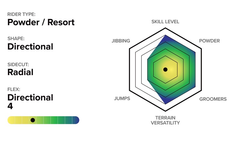Built for powder, resort laps and side-hits alike, this board blends surf-style float, park-style freedom and all-terrain responsiveness.