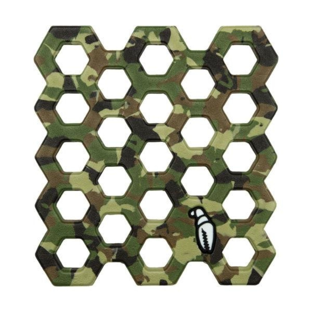 Stick this large format foam traction to your topsheet and lure your slippery boot into its grippy grasp. Whether you have big feet, a big board, or just big plans, This oversized trap will catch any size boot that comes it’s way. Inspired by the proven pattern of Maryland-style chicken wire traps of the Chesapeake Bay. Boot treads go in, but they don’t come out.