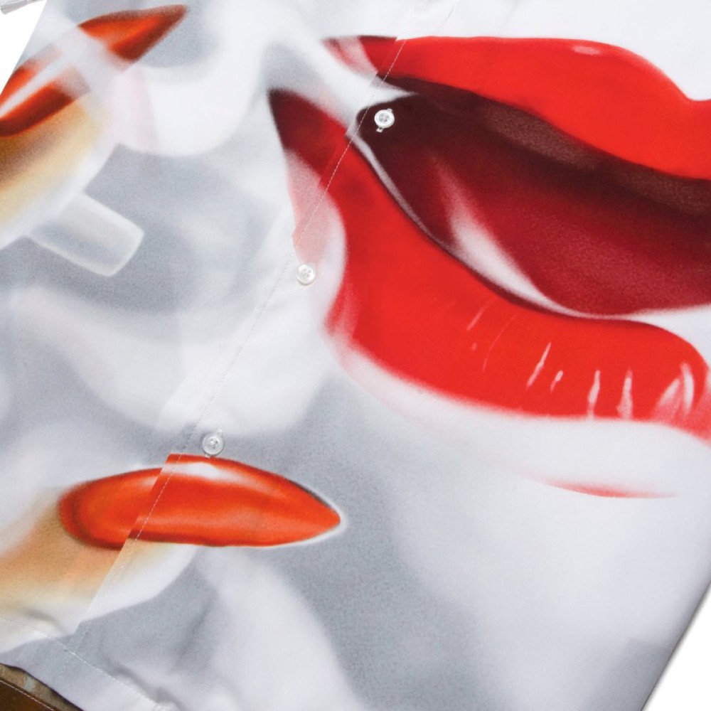A nod to vintage vacation button-ups, the Seductive Resort Short Sleeve Top is made of silky rayon featuring 80s film-inspired all-over artwork. Topped with a casual camp collar, the button-up is finished with side-seam vent slits at the hem.