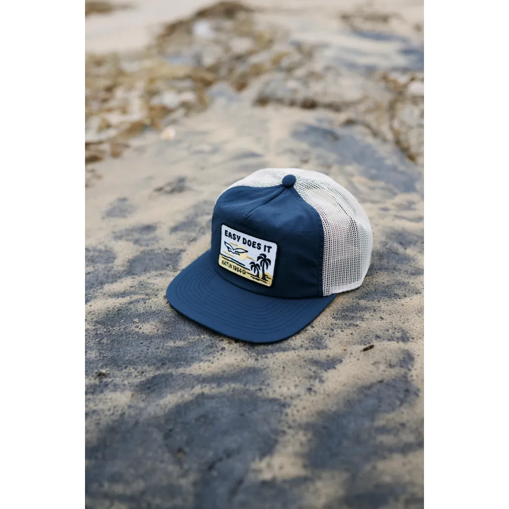 The Squawk Trucker Hat features a custom Katin embroidered patch, and is made from nylon with a polyester mesh back and snapback closure.