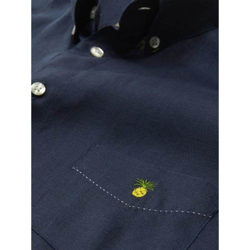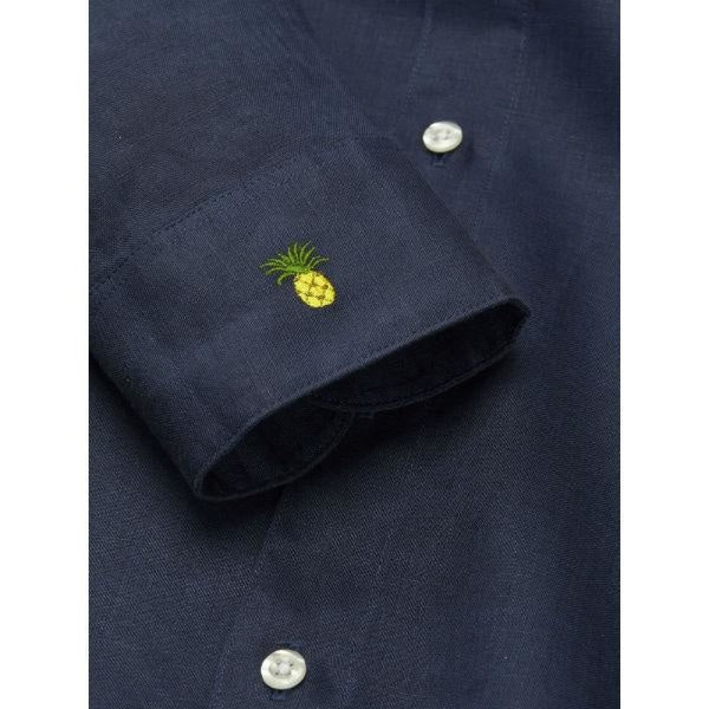 Beach shirt in 100% linen, with three embroideries placed across the shirt.
