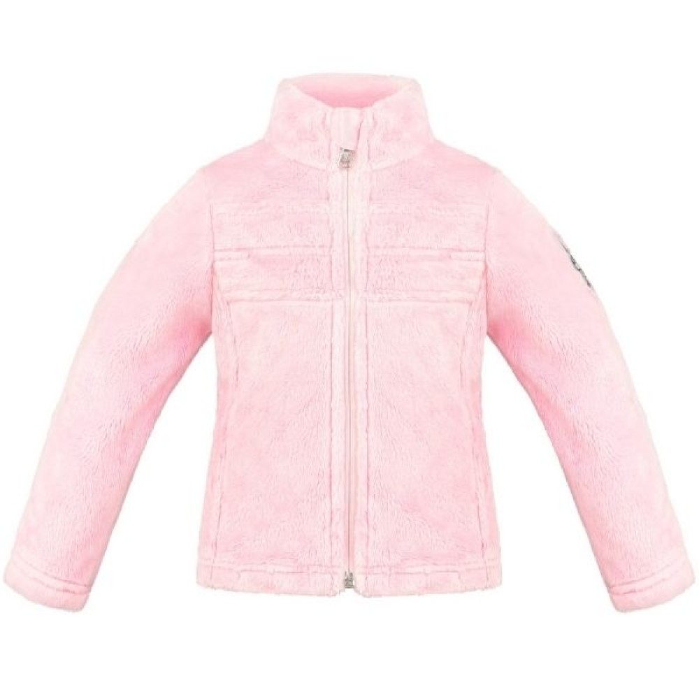 - This fluffy fleece jacket will be her absolute favourite. Cute, cozy and warm and lightweight, it is ideal for everyday or sport wear. The material is 100% polyester, equipped with a chin guard and a sweet embroidery the left sleeve. This jacket will be a must-have piece for little fashionistas.