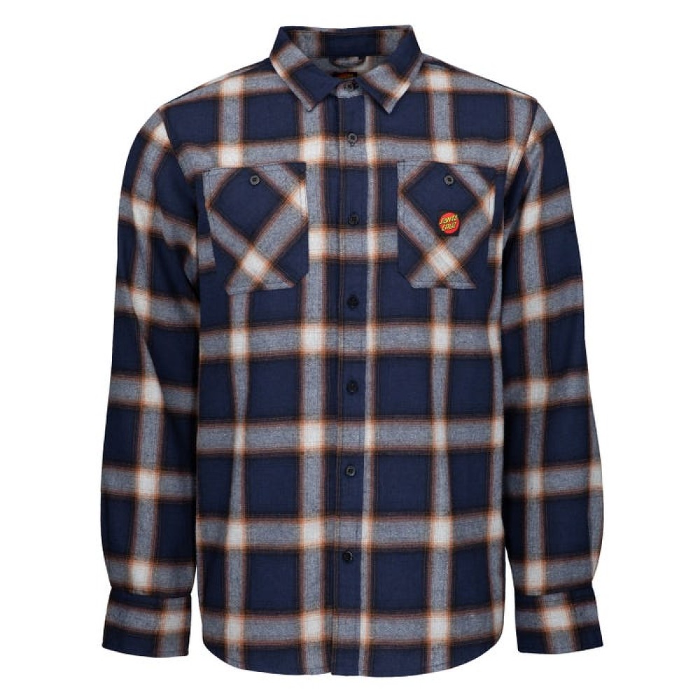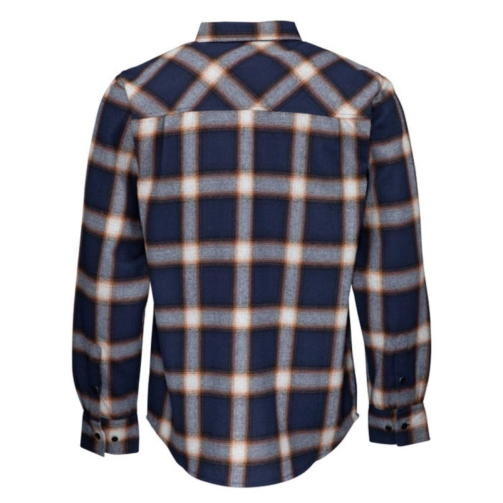 50% cotton, 50% polyester brushed, long sleeve shirt, button up with twin chest pockets, curved hem and front woven label