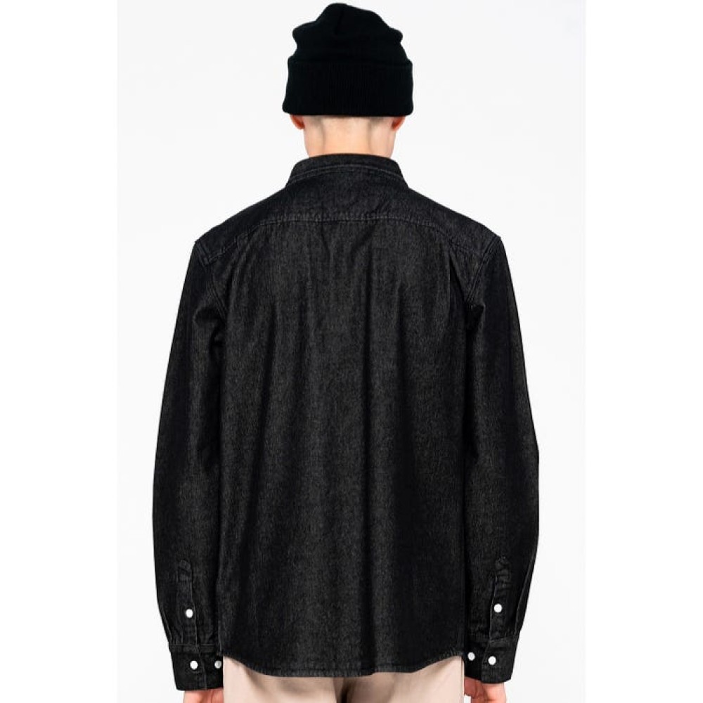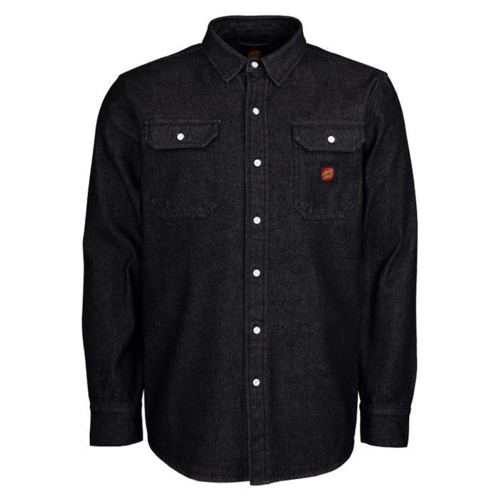 100% cotton, 12oz denim long sleeve shirt, button up with twin chest pockets, curved hem and front woven label