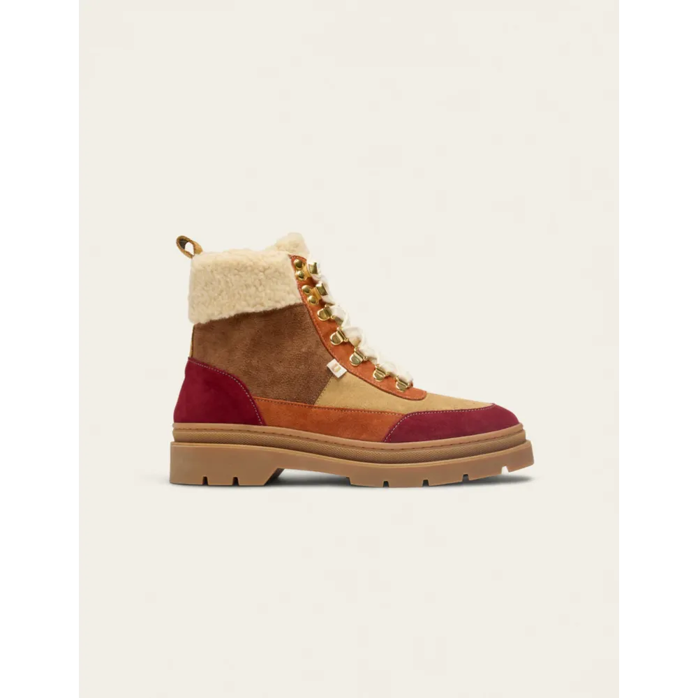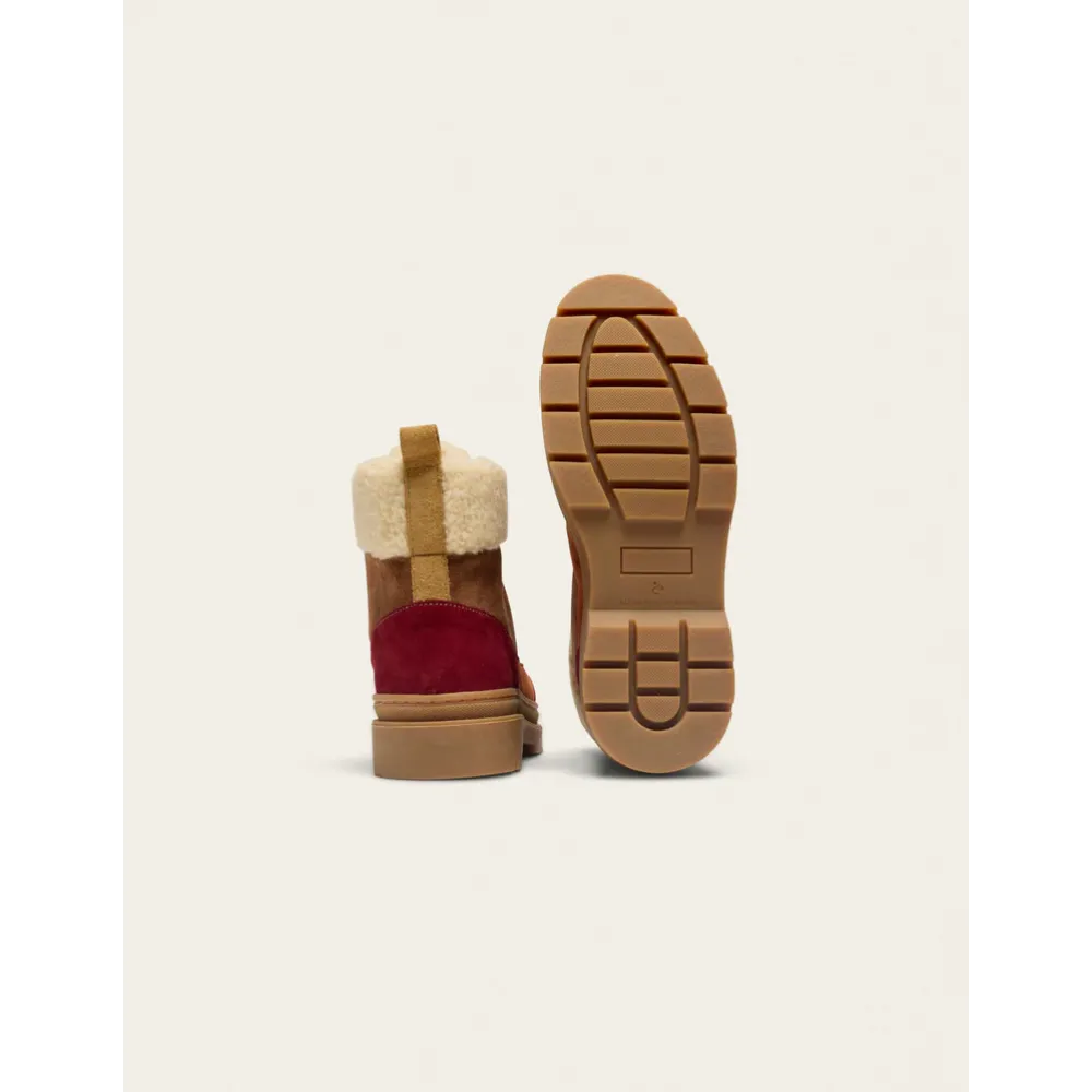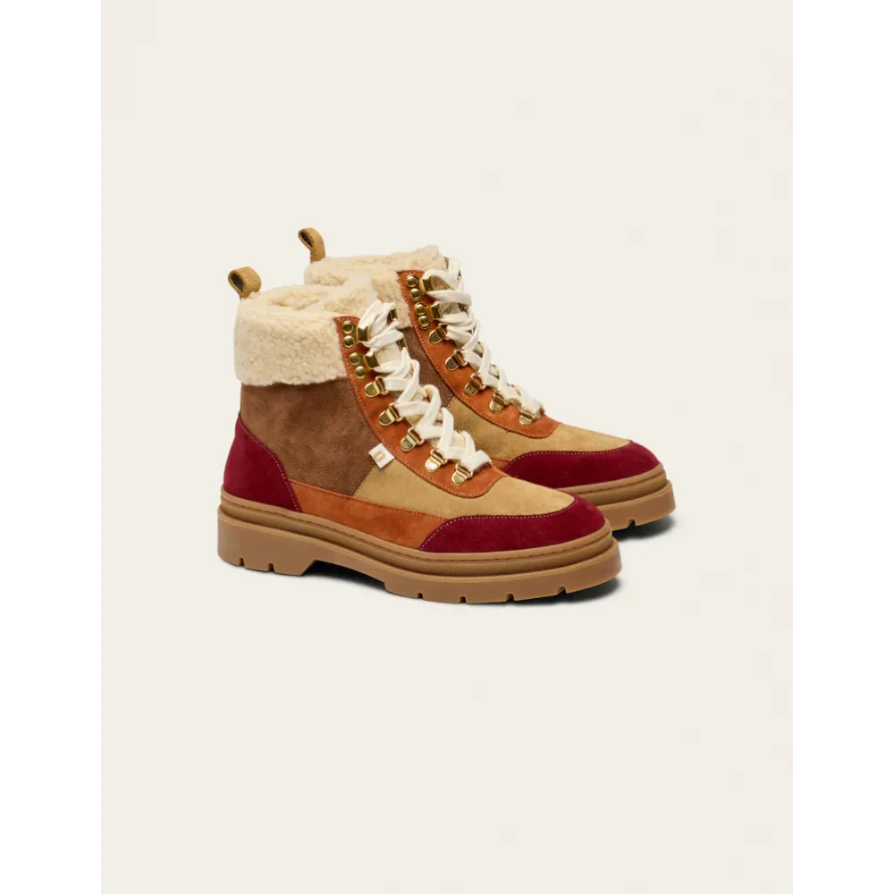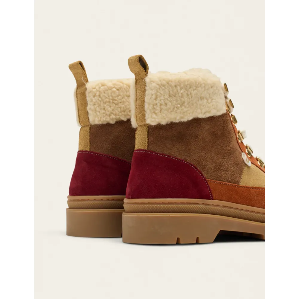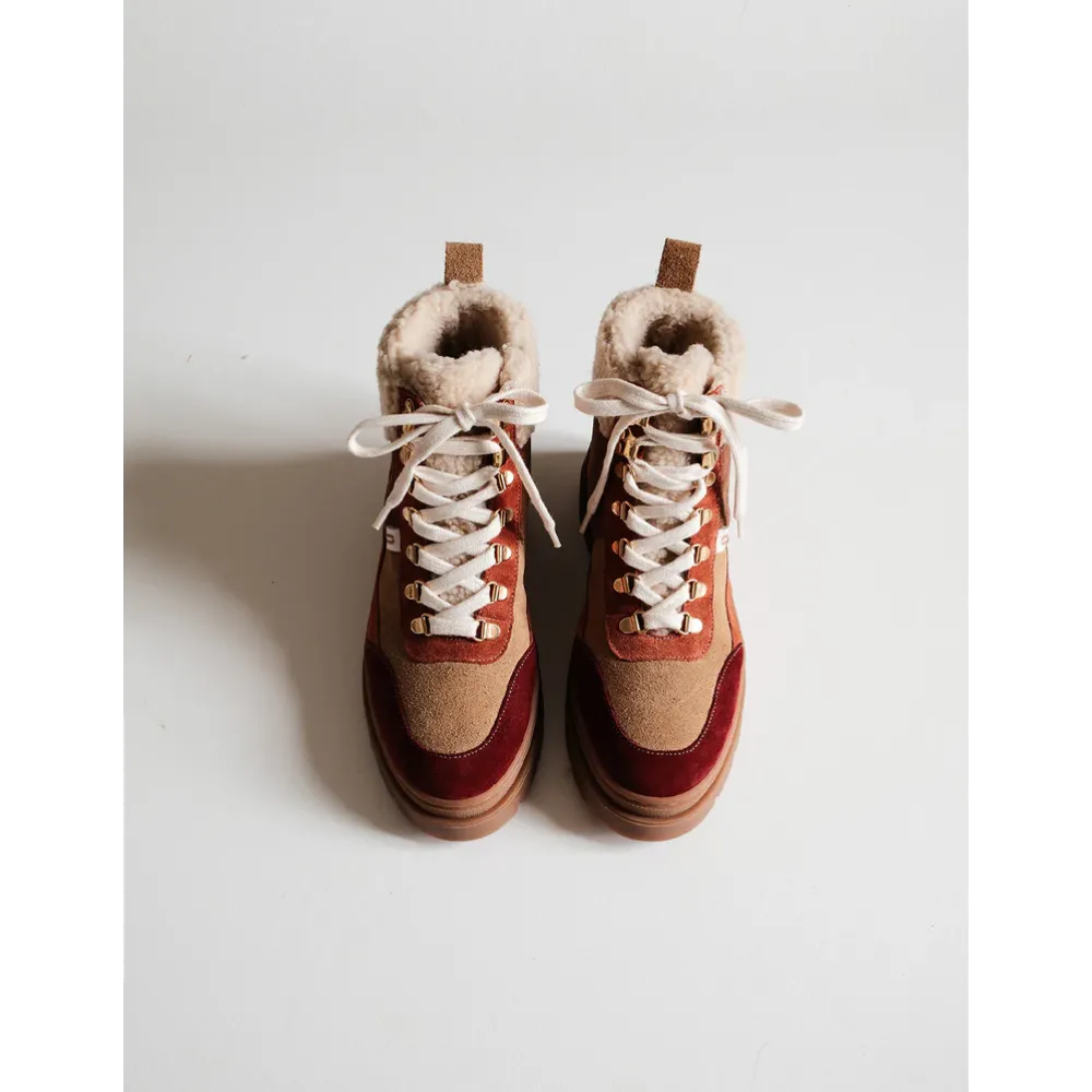 - Premium Suede Construction: Elegant combination of bordeaux, beige, and terracotta shearling suede sourced from Italian and Spanish materials for a luxurious finish.