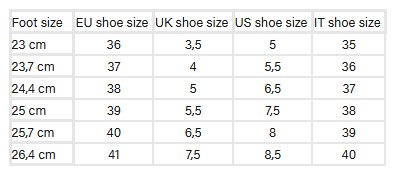 This model fits true to size; choose your usual size for the best fit. Measure from heel to the tip of your longest toe to ensure accurate sizing guidance.