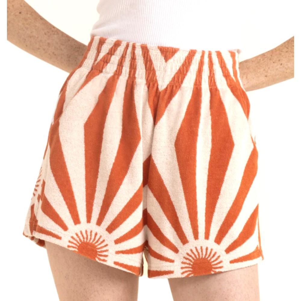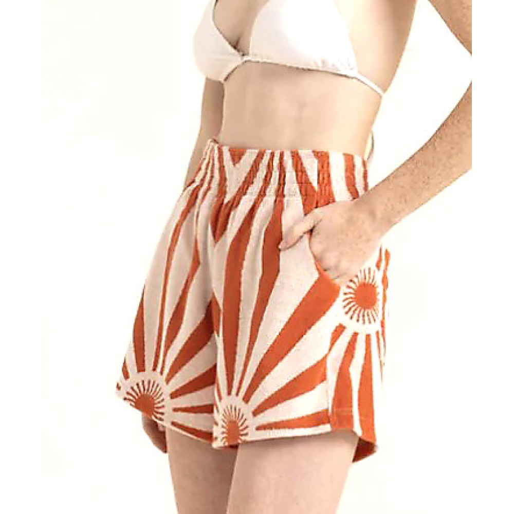 Cut from terrycloth and unique Italian-inspired Jacquard print, meet The Terra Short. Our perfect beach coverup for a day spent under the sun, immersed in saltwater. Donning a bold pattern inspired by the strong sunrays of Sardinia and a colorway akin to the Italian terracotta rooftops dotting the mediterranean coastline, the comfort and style of this short is sure to transport you to Italy—all you’re missing is the Aperol Spritz.