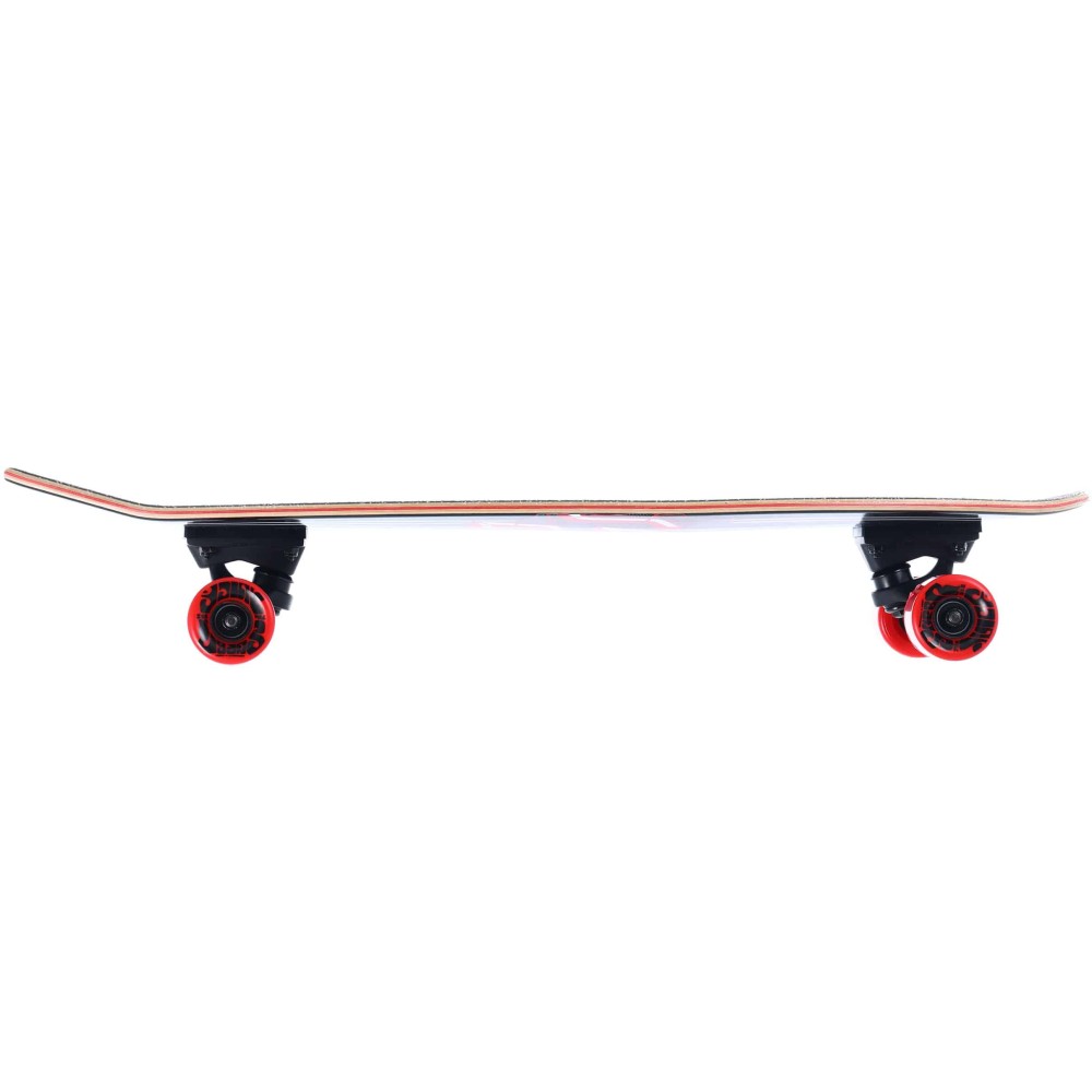 The Santa Cruz Tangled Web Shark cruiser showcases a brand-new Shark shape with spot gloss graphic artwork. This new design offers a very smooth ride with effortless turning, and a lower profile for easier pushing. It's built with a 7-ply deck and features Cruz Missile II concave for enhanced comfort, Krux 8.0 Black Widow trucks with risers, and 55mm, 78a OJ Super Juice wheels for a smooth, stable ride.